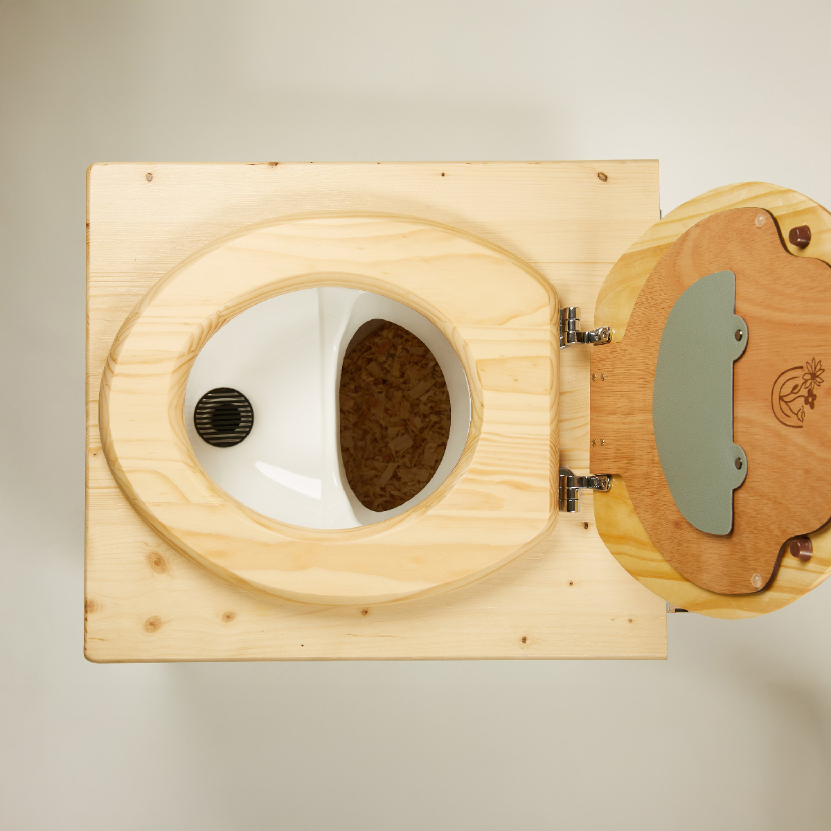 Grâce à son système de séparation, les toilettes sèches La Fabulette séparent naturellement l’urine des matières solides. Cette séparation permet d’alléger considérablement le poids du seau et le volume à composter. Pour un seau de 20 L, le poids passe de 13–18 kg pour une toilette sèche classique à seulement 3–4 kg avec la toilette sèche La Fabulette.